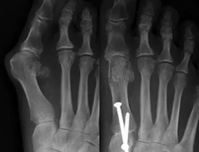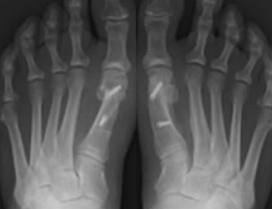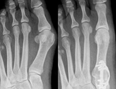 Arthrodesis is typically a surgery that’s done on severe bunions and on people with arthritis. Your doctor will remove the affected joint surfaces and then rely on plates, screws, and possibly wires to hold bone together around the removed joint until the bones have a chance to heal.